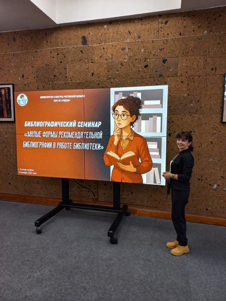 Она представила #БиблиотекиБатайска на ежегодном библиографическом семинаре “Малые формы рекомендательной библиографии в работе библиотеки”.