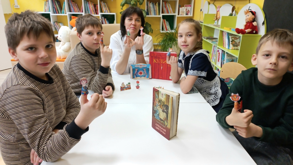 Мы в Центральной детской библиотеке устраиваем с ребятами пальчиковый театр по сказке Сергея Аксакова «Аленький цветочек».