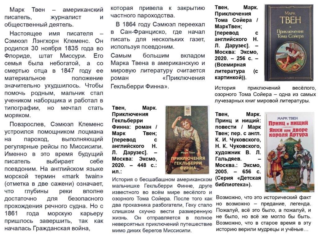 19.12.2025 г. Списки-закладки «Незабываемый мир Марка Твена».